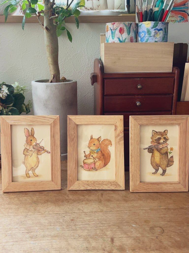 木製の額縁に収められたサイズは12.2×15.9センチで、お部屋にちょっとした趣を添えることができます。